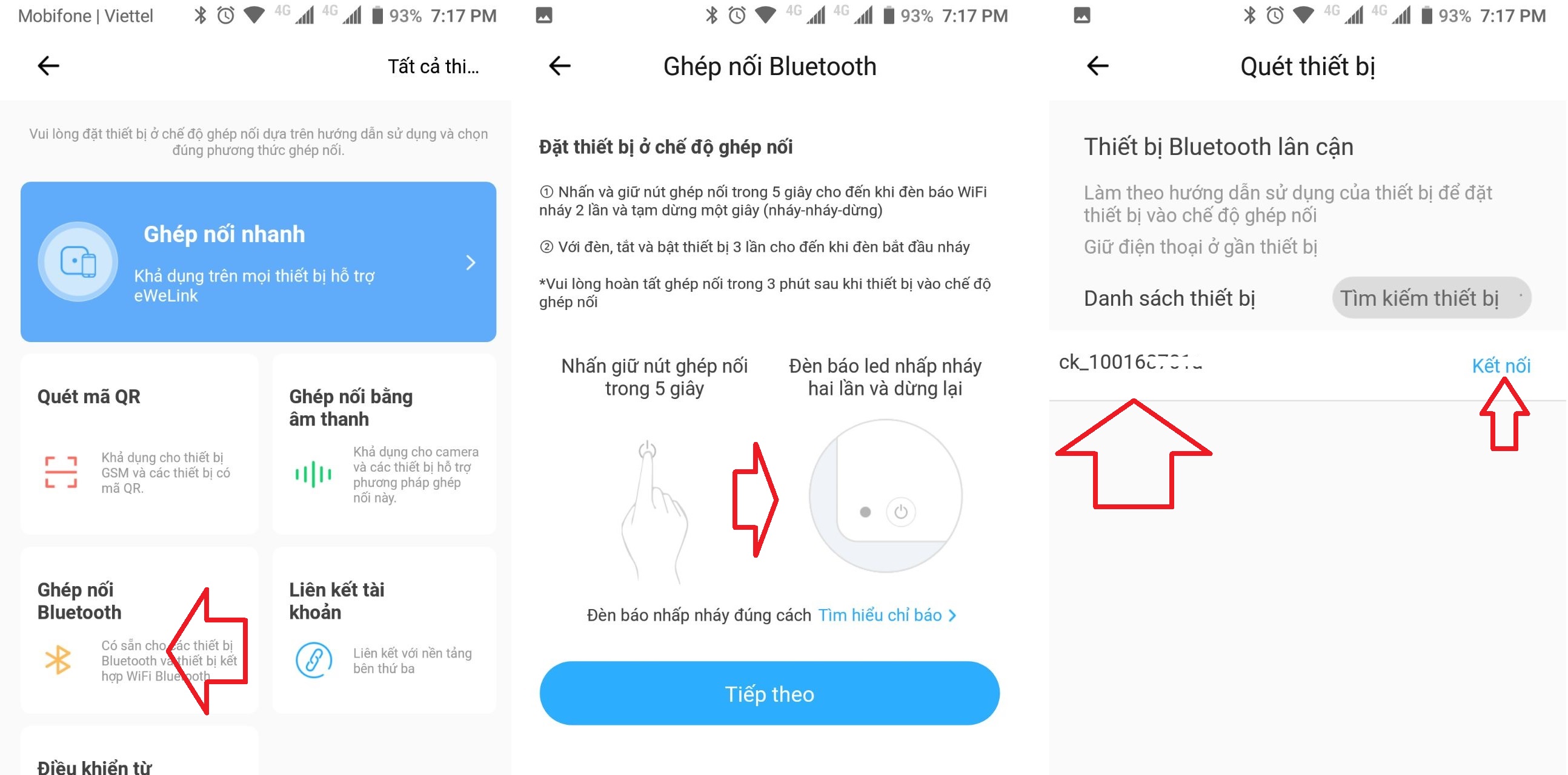 Sau khi cấp nguồn, bạn có thể điều khiển trực tiếp bằng các nút trên công tắc được rồi. Bước tiếp theo, kết nối thiết bị Sonoff vào ứng dụng eWeLink. Bạn nên sử dụng điện thoại Android để kết nối wifi cho thiết bị, sau khi kết nối wifi bạn sử dụng diện thoại nào điều khiển cũng được.