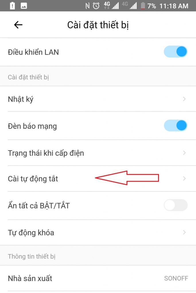 Bạn cuộn xuống phía dưới, chọn mục Cài Tự Động Tắt.