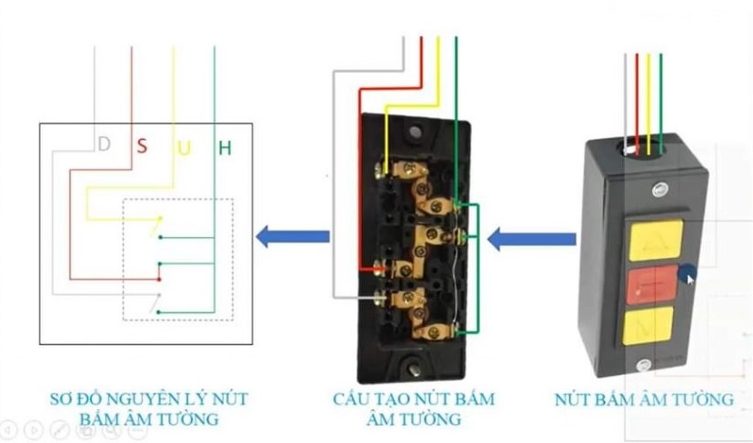 1.> Hướng dẫn đấu dây dành cho Loại 1 ( có nút Dừng là thường Đóng ) :