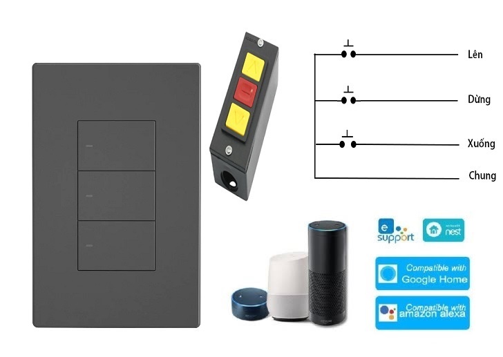 Bạn có thể đấu công tắc Sonoff M5 3 nút song song với công tắc cơ của Cửa Cuốn, khi đó bạn vừa điều khiển cửa cuốn từ xa trên app ewelink, mà vẫn điều khiển bằng công tắc cơ của cửa cuốn như bình thường.