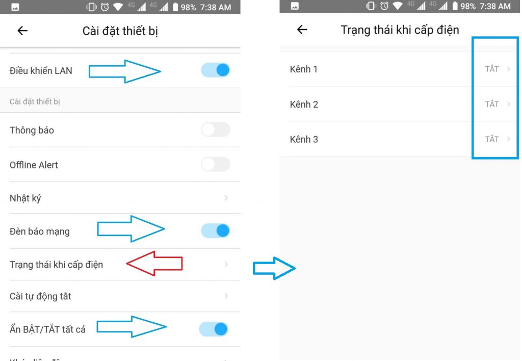 + Cài đặt cho công tắc luôn TẮT sau khi cấp nguồn để đảm bảo an toàn cho nhà khi bị cúp điện.