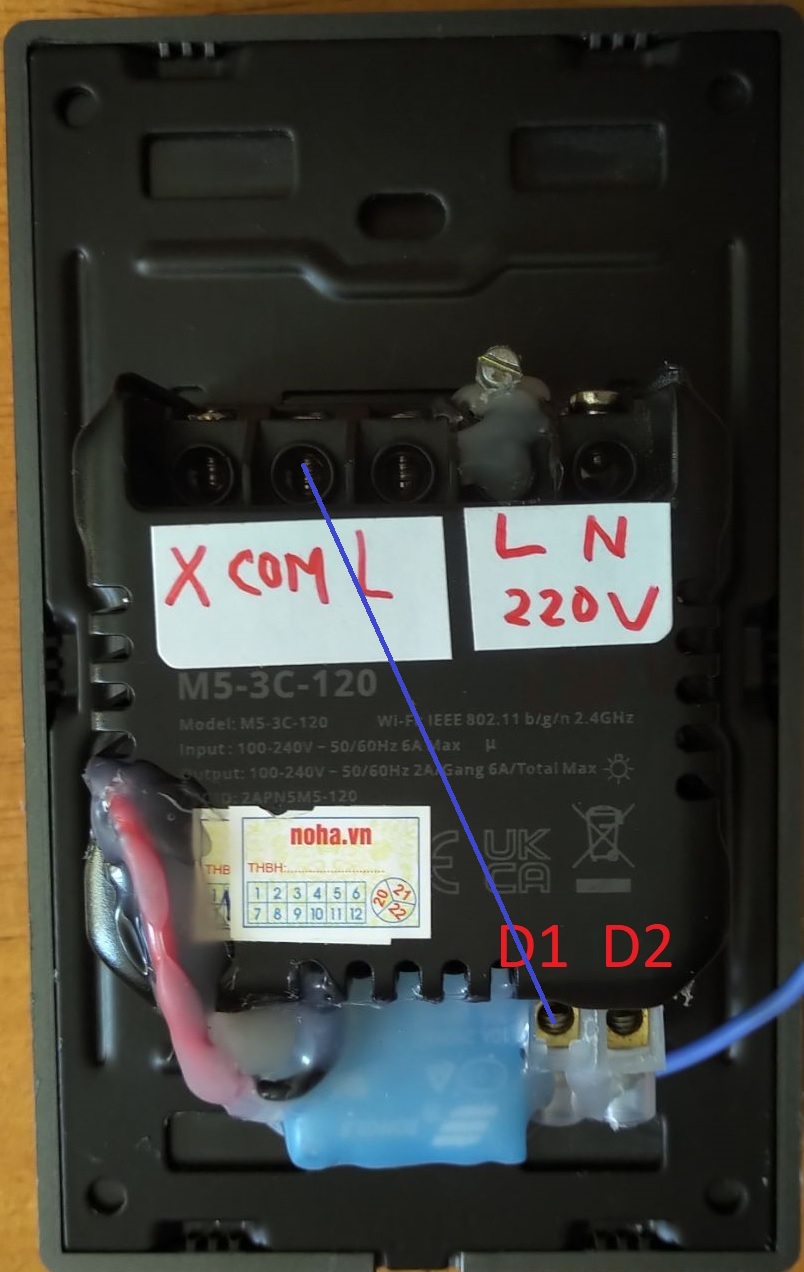 + dây Chung của Cửa Cuốn vô cổng COM của công tắc M5.